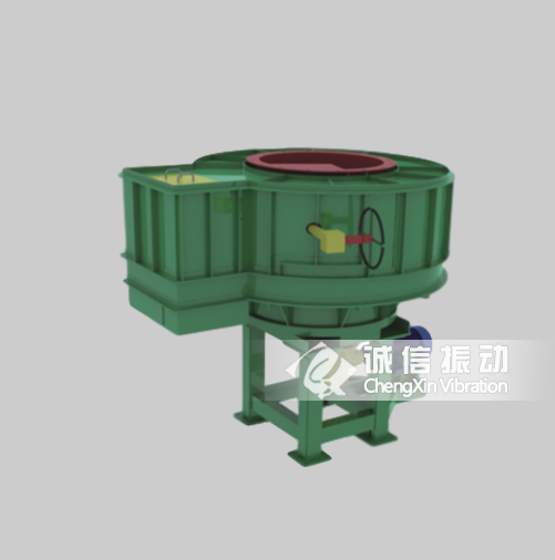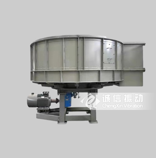电动机经联轴器通过减速机带动圆盘,圆盘转动时,料仓内的物料随着圆盘转动,并向出料口的一方移动,经闸门或刮板排出物料,排出量的大小可用刮刀装置或闸门来调节。